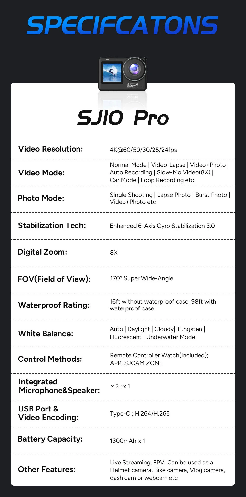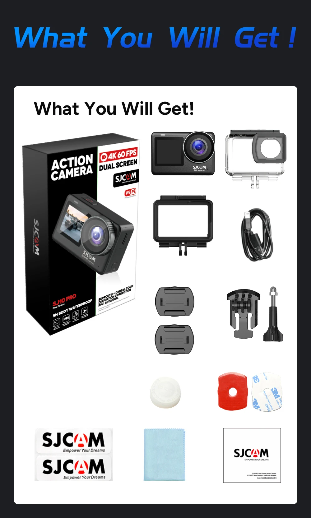 SJCAM SJ10 Pro Action Camera 4K Waterproof 2.33" Touch Screen Camera 5G WiFi Night Vision Active HDR Video Sports DV