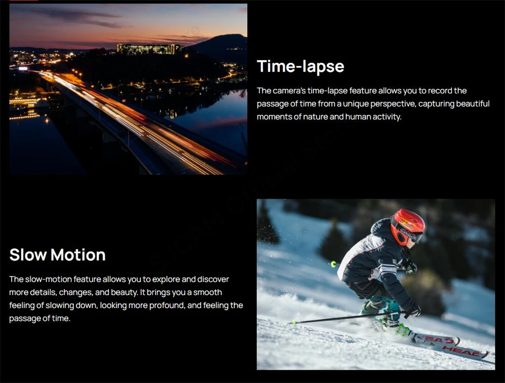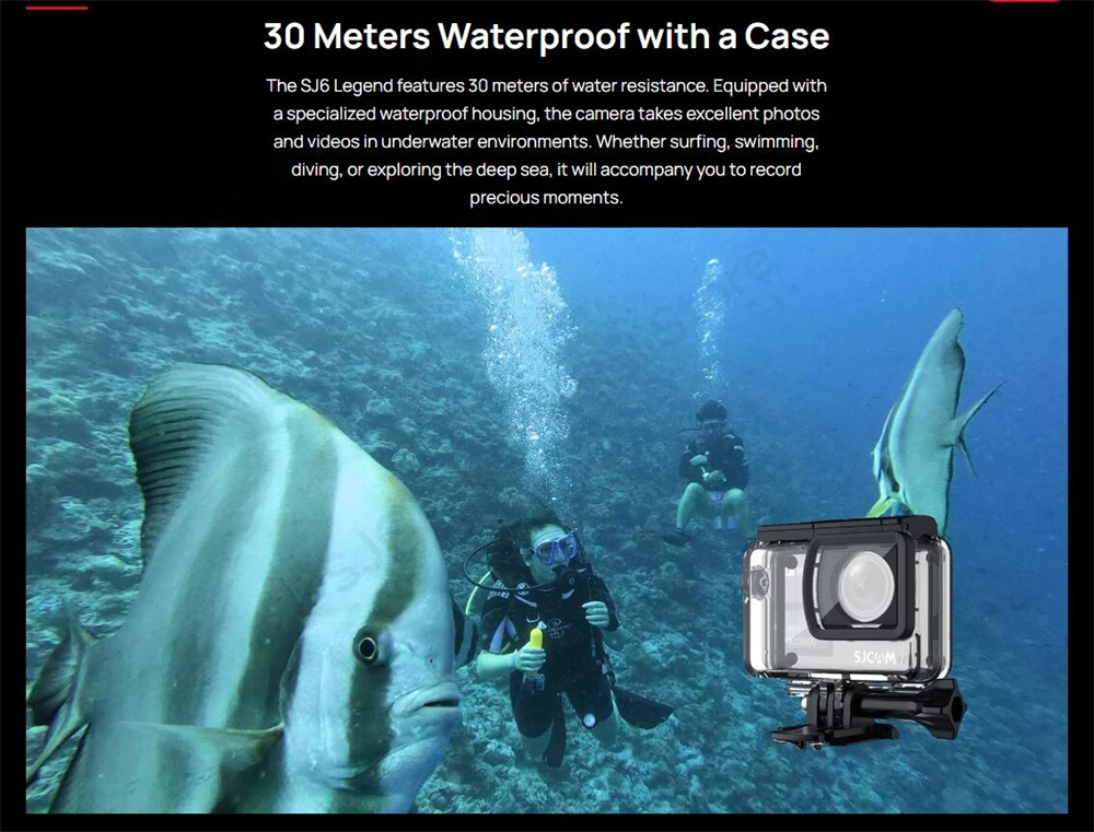 【UNDERWATER 4K CAMERA 】: The SJ6Pro action camera has equipped with a waterproof housing, This feature enables users to dive or snorkel while recording their adventures, whether it's exploring coral reefs, swimming with marine life, or capturing underwater sports activities. Additionally, SJ6pro action cameras come with specialized underwater modes to enhance the colors and clarity of underwater footage, delivering visually captivating results.