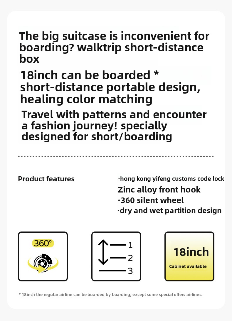Travel with ease and confidence with the KLQDZMS 18-inch Suitcase. The durable ABS+PC shell and aluminum frame protect your belongings, while smooth-rolling universal wheels ensure effortless maneuverability. Perfect for short trips, this suitcase offers reliable performance and stylish practicality