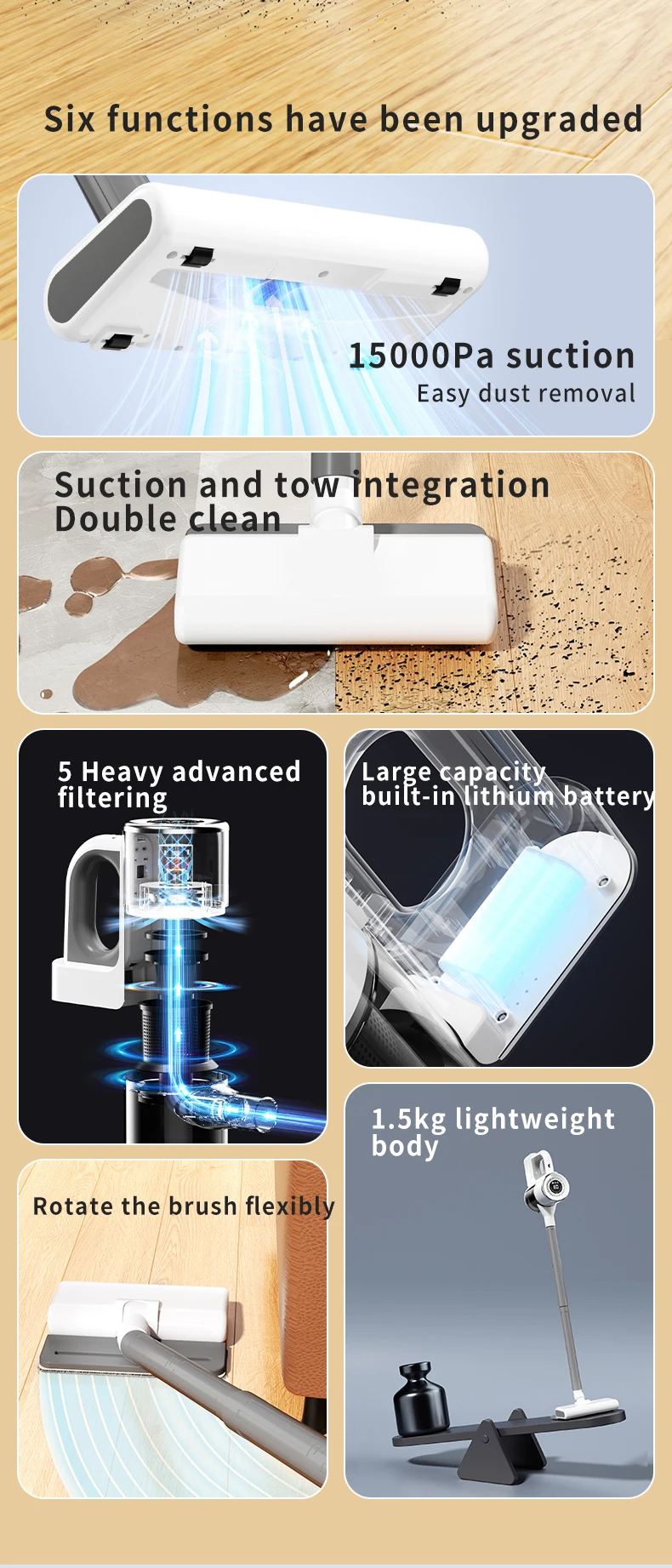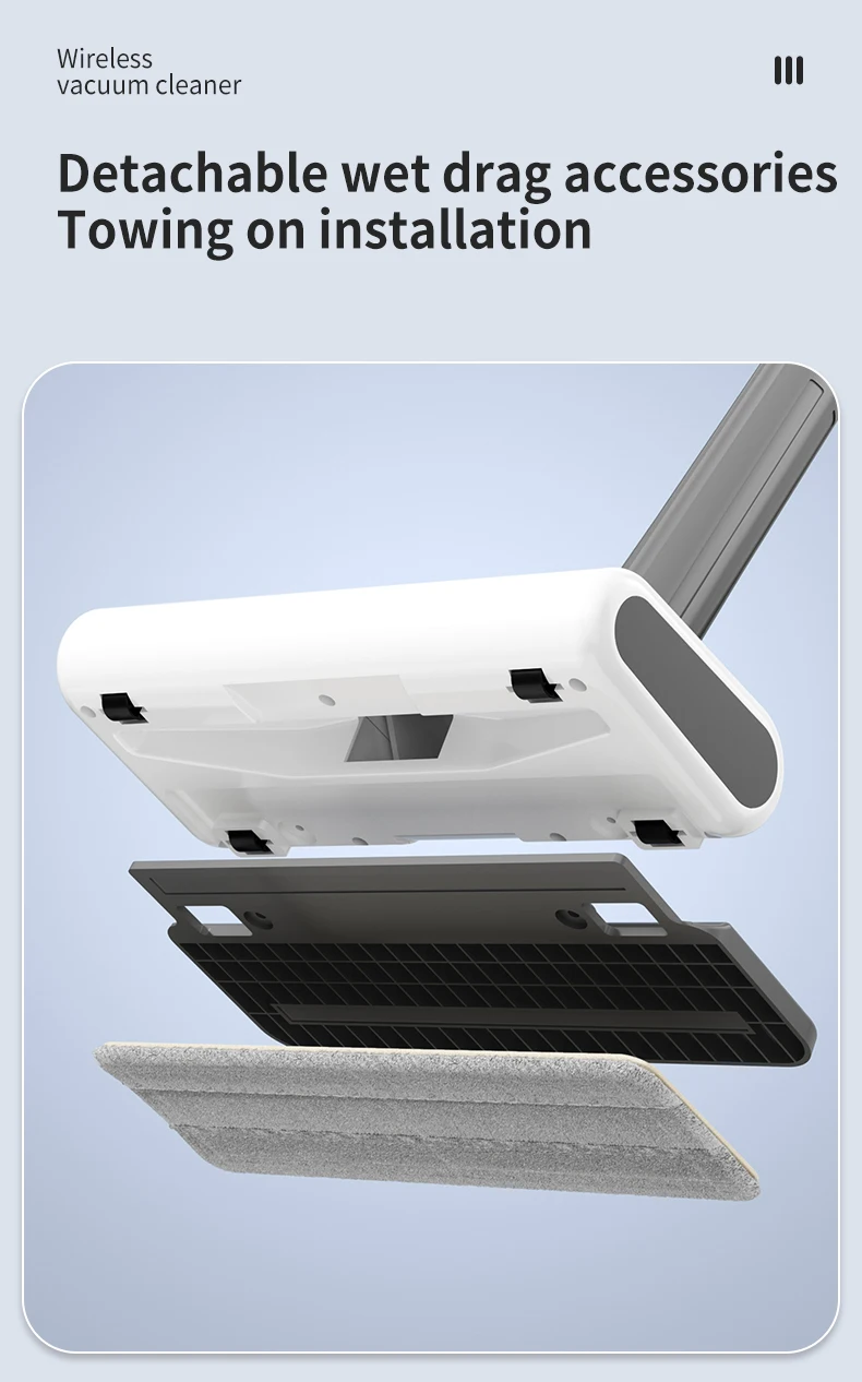 Detachable Wet Tow Accessory: Perfect for mopping after vacuuming, leaving floors instantly clean.
