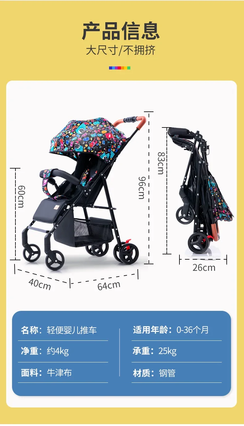Glide through life with ease using our ultra-light, foldable stroller. The shock absorbers ensure a smooth ride for your newborn, while the high-view design and convenient storage pocket enhance your parenting experience