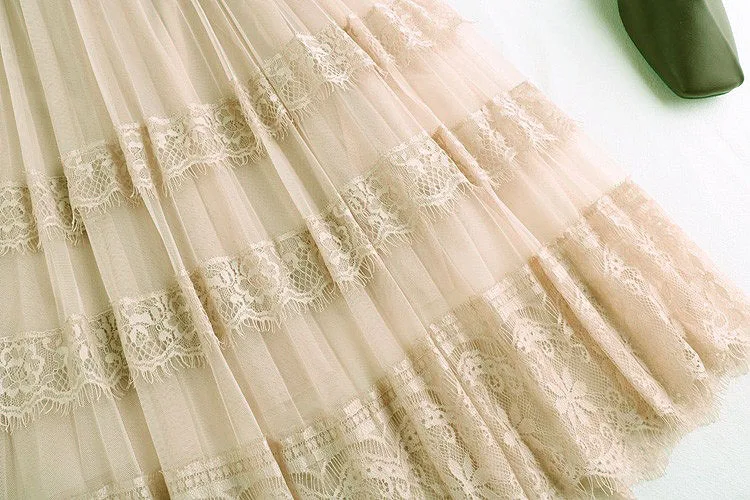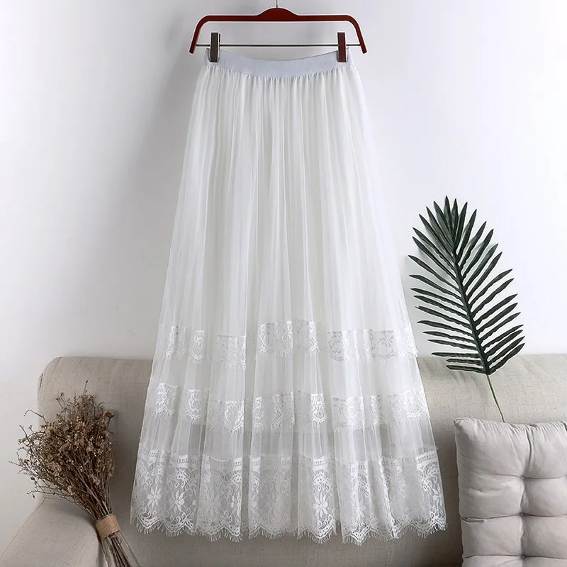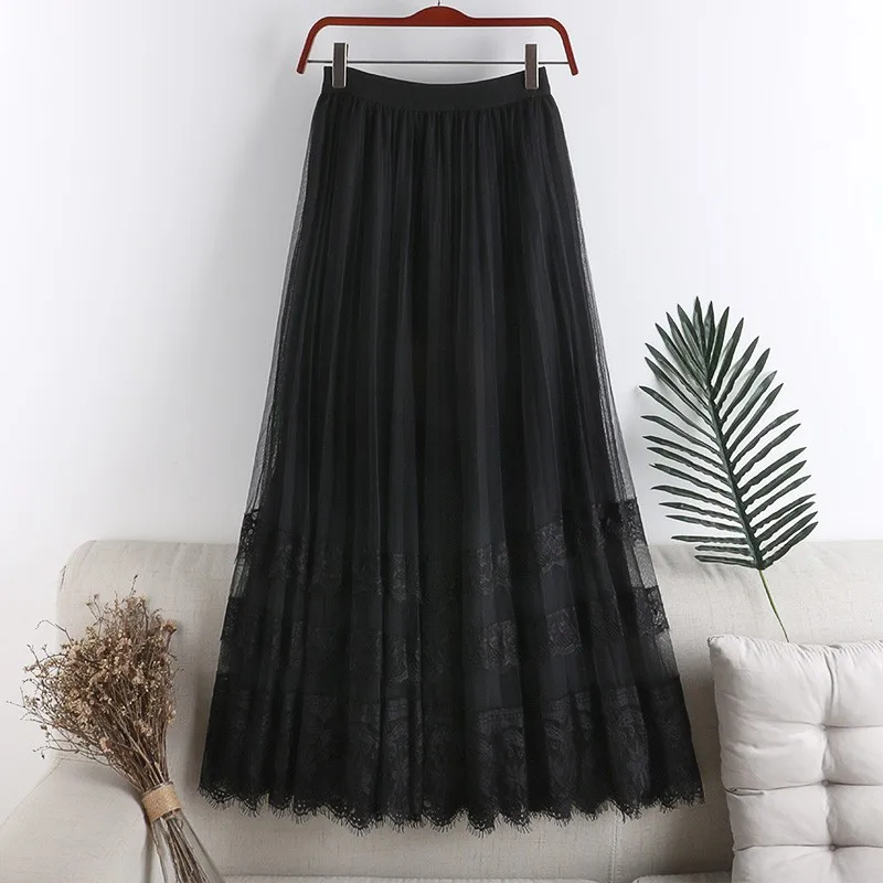 Crafted from delicate lace material, this skirt adds a touch of elegance and femininity to your wardrobe.