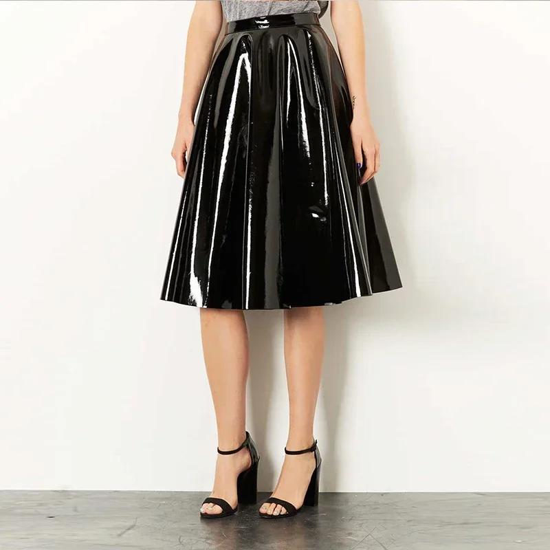 Turn heads with our High Waist PU Leather Pleated Midi Skirt. The A-line silhouette flatters every figure, while the luxe vegan leather adds a touch of edgy sophistication perfect for any occasion, from day to night
