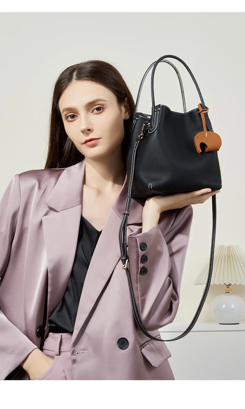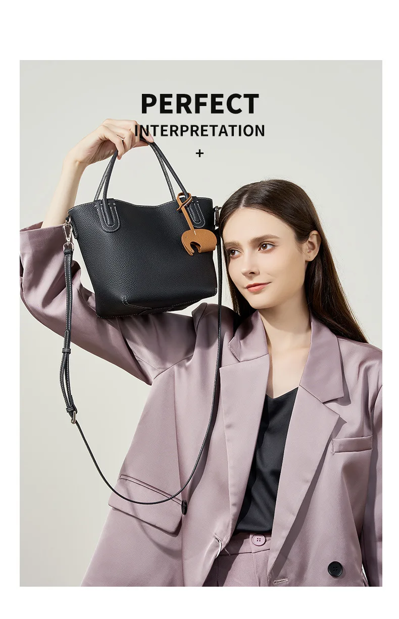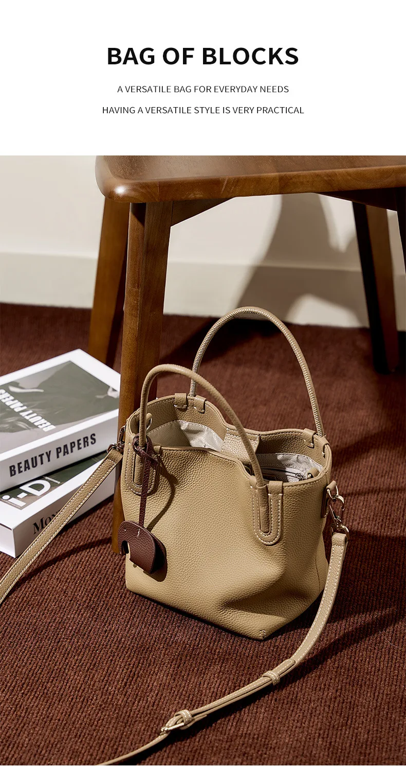 The YANATARI Genuine Leather Bucket Bag offers timeless minimalist style with the durability of high-quality leather. Its versatile crossbody design and spacious interior make it perfect for everyday use, adding a touch of understated luxury to any outfit