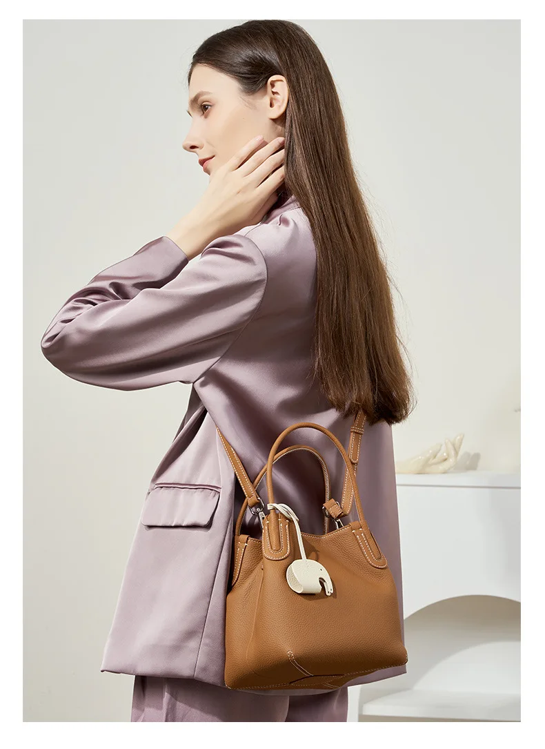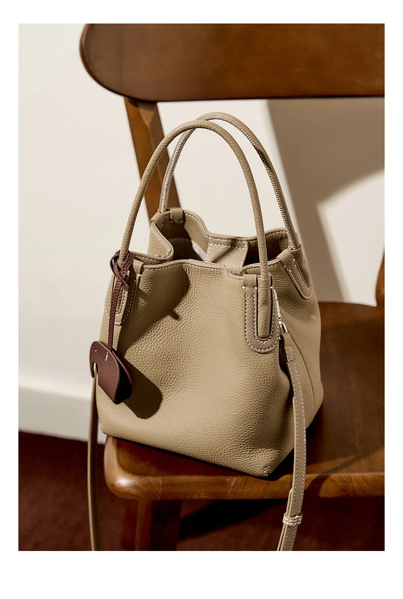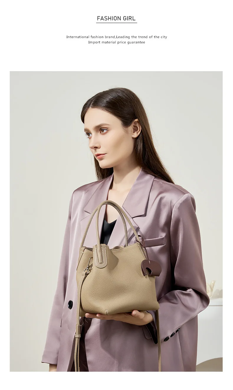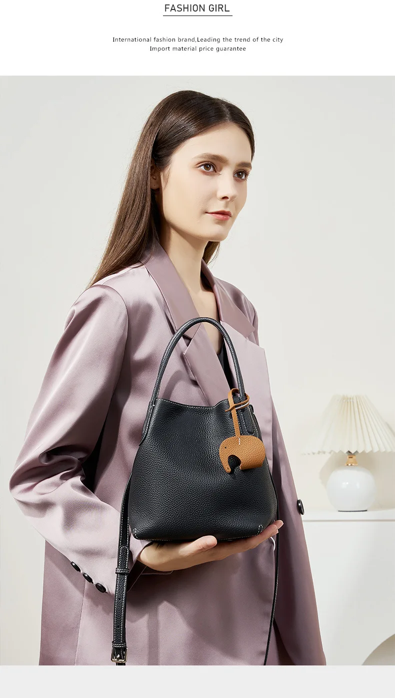 The YANATARI Genuine Leather Bucket Bag offers timeless minimalist style with the durability of high-quality leather. Its versatile crossbody design and spacious interior make it perfect for everyday use, adding a touch of understated luxury to any outfit